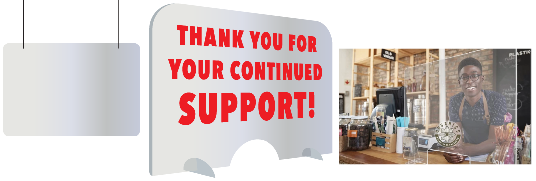 We want to help you get back to business with a variety of signs, graphics and barriers. Whether it’s banners to announce that you are open, graphics to encourage social distancing, sneeze guards for point of purchase, or simply yard signs to congratulate your graduating senior, we can design, print and even install the things that will get you on the road to normal.